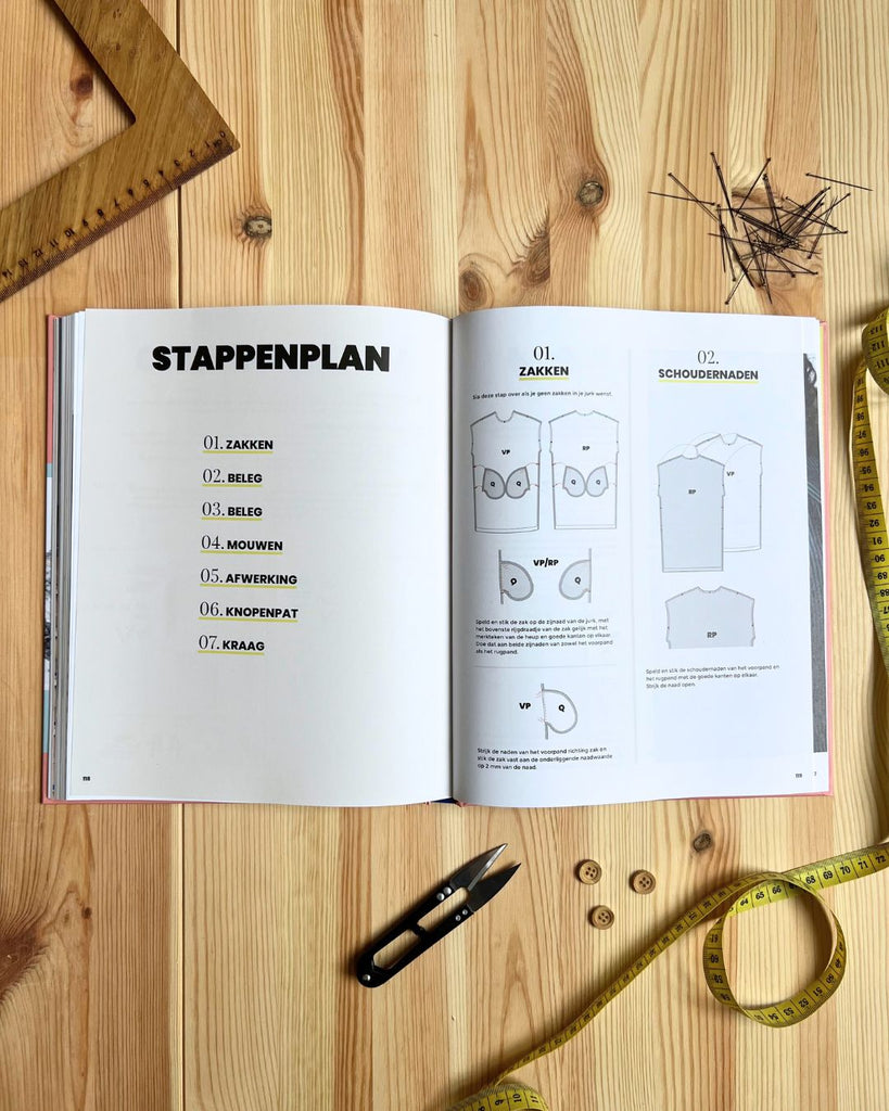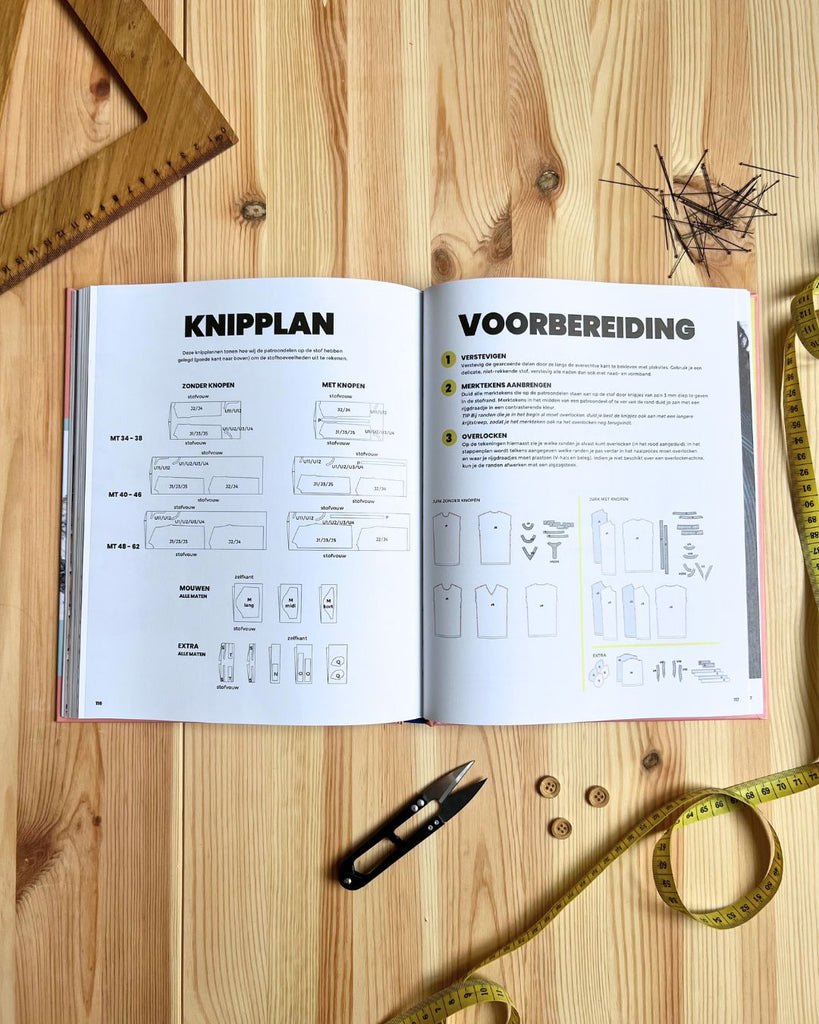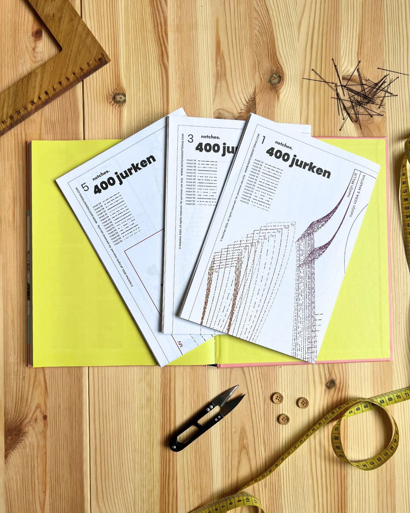 Inside the book you will find three large format pattern sheets with all the pattern pieces. The pieces overlap and don't include seam allowance. They are easy to trace on a seperate piece of pattern paper so you can make adjustments according to your body proportions if necessary before adding seam allowance.