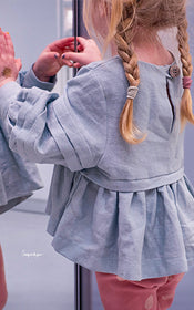 Didi strategically alternates between roomy and accommodating. There is plenty of ease at the bust, waist and hips, while at the same time we ensured a sophisticated silhouette by leaving the shoulder points in the right place and using a lantern sleeve to bring the wide long sleeves down to an elegant wrist cuff. The long sleeves are meant to fall on the wrist. The short sleeve has a wide sleeve hem with a decorative pleat.