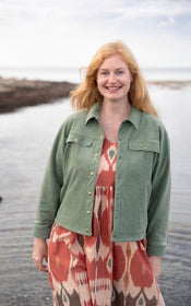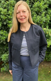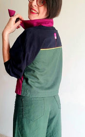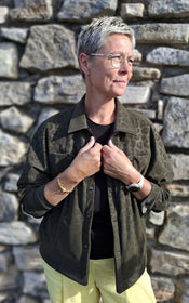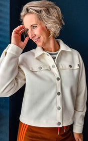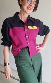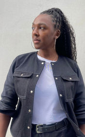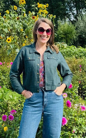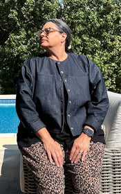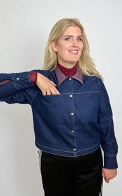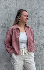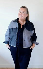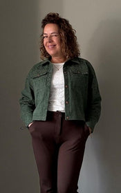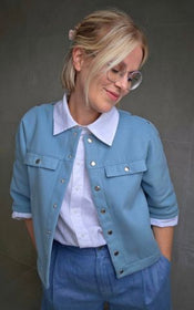 Jenna offers a world of possibilities: cropped or longer length, collar or collarless neckline, cuffed sleeves with placket or simple three quarter sleeves, and practical in-seam pockets hidden along the front yoke seam. Topstitching can be subtle or bold, depending on your fabric choice and mood.