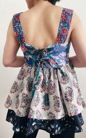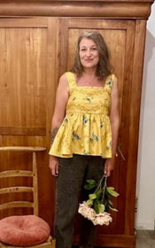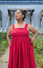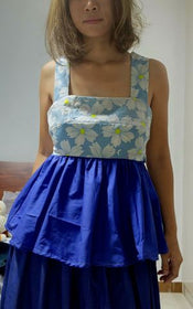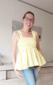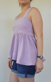 With this pattern you will learn how to sew gathers, make a doubled (lined) bust piece, sew a back closure with tie ribbons, and construct shoulder straps.