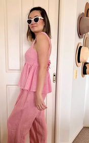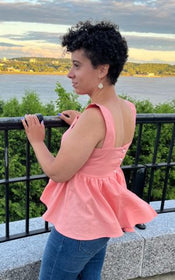 As for the closure, we have two options: the button closure in the back makes for a tidy fitted silhouette, or add some fun with some trendy ties.