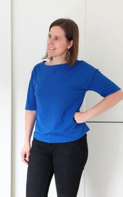 Billy is een veelzijdig naaipatroon waarmee je een zalige T-shirtjurk, een basic top of een stuk met statement mouwen kunt maken. Het heeft een zeer eenvoudig ontwerp en veel verschillende opties.