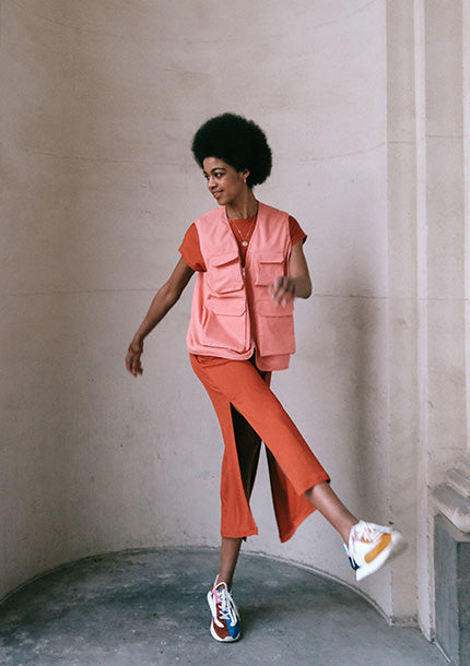 Faites défiler la page pour découvrir plus de détails sur les variantes, la coupe, le choix des tissus, etc.