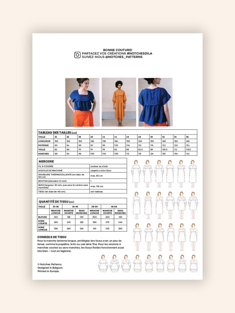Grâce à son équilibre entre détails raffinés et polyvalence, Dila est un modèle très apprécié des couturières qui aiment les projets élégants et pleins de caractère.