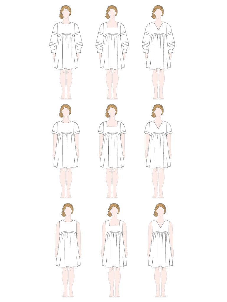 - Un seul patron, une multitude de styles — du haut à la robe longue, du décontracté à l’élégant.