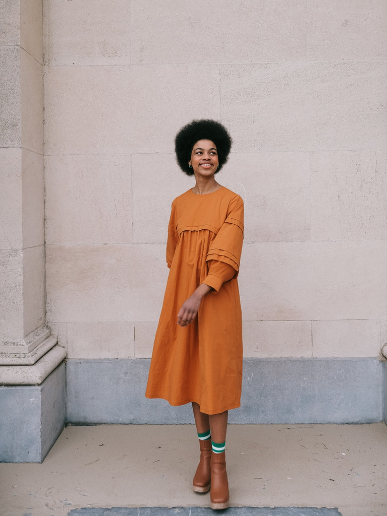 Le patron Sinai est une robe, un haut ou une chasuble trapèze aérienne à la coupe décontractée, parfaite à superposer ou à porter seule. Les couturières peuvent choisir entre une encolure ronde ou en V, et finir les bretelles avec des liens à nouer, des boutons, un élastique ou de simples bretelles droites pour un style personnalisé. Avec plus de 40 variantes possibles et un temps de couture rapide, c’est le patron incontournable pour vos clientes !