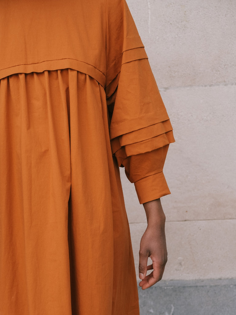 Le patron Dila offre un mélange inspirant de techniques de couture créatives et de détails de design élégants, en faisant un projet gratifiant pour les couturières. Avec ses manches plissées caractéristiques, sa fente dos fermée par un bouton et ses lignes raffinées, Dila allie plaisir de couture et résultat spectaculaire.
