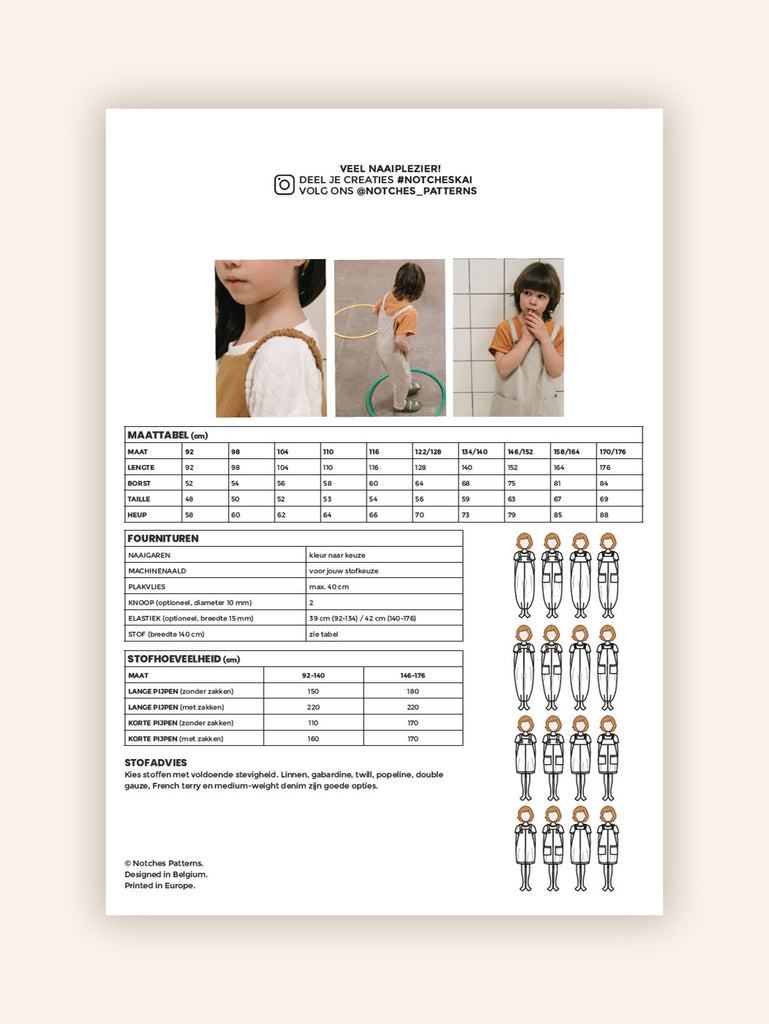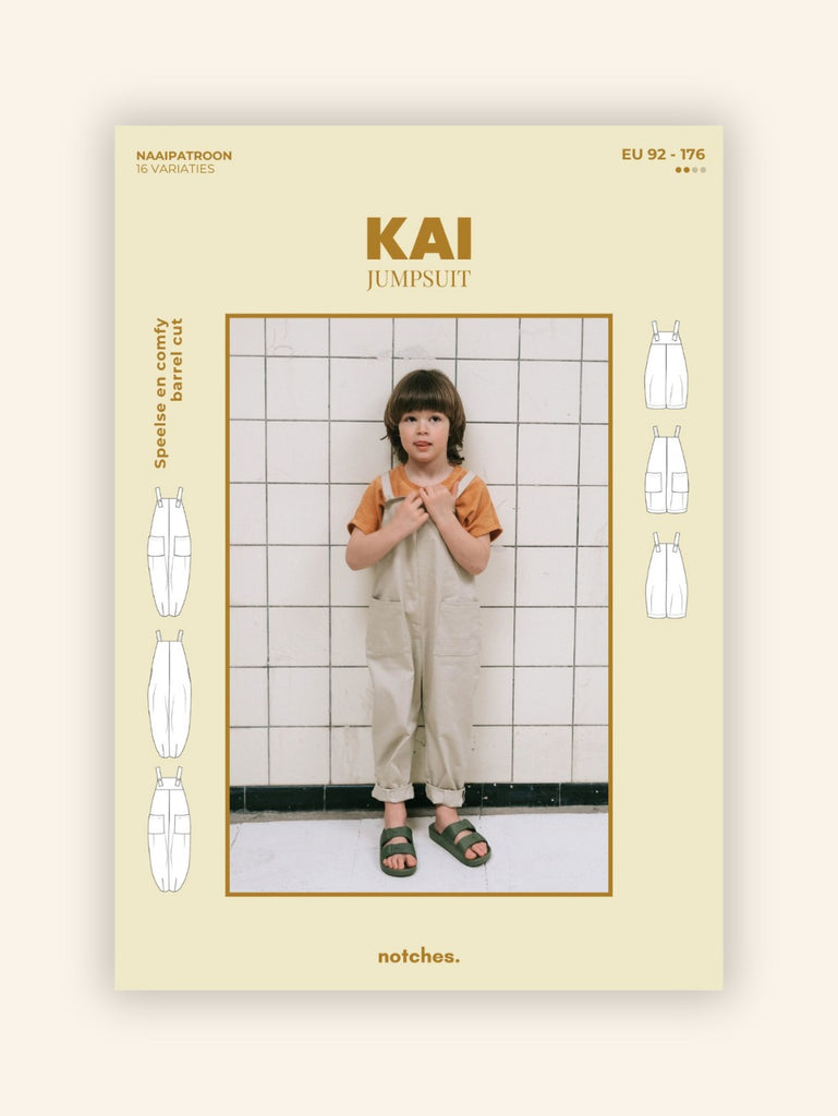 Kai is een zeer veelzijdig, genderneutraal naaipatroon. Draagbaar in alle seizoenen, want je kunt het makkelijk combineren met een T-shirt of trui eronder. De diepe armsgaten zorgen voor extra bewegingsvrijheid, terwijl de toelopende pijpen en de subtiele plooi aan de zoom structuur en vorm geven.