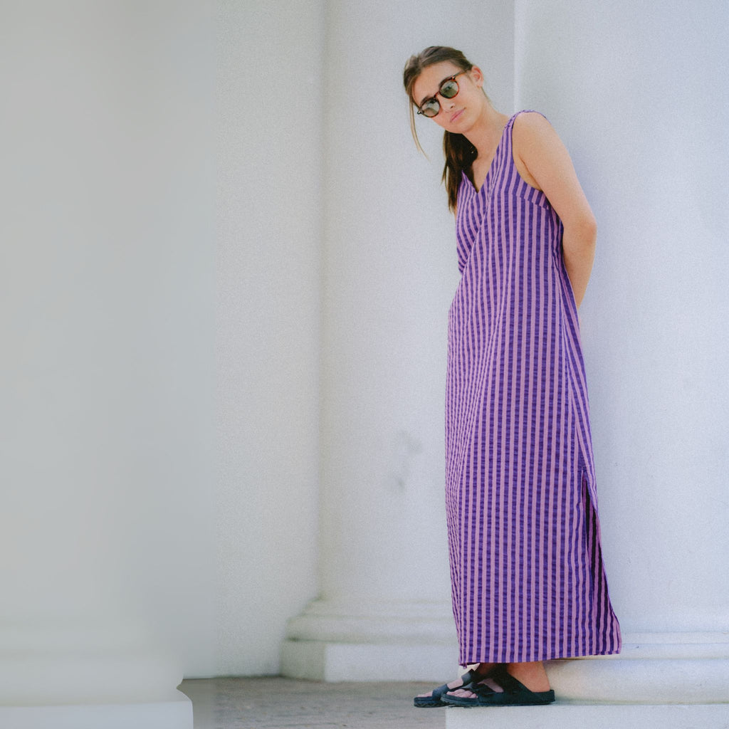 Wear her as a flirty summer top, a short everyday dress, or go for full drama with the elegant maxi length. Add side slits for extra movement or keep it simple and streamlined. The deep scoop back adds a touch of sophistication, and optional center seams offer a fun way to incorporate topstitching or make the most of solid-colored fabrics.
