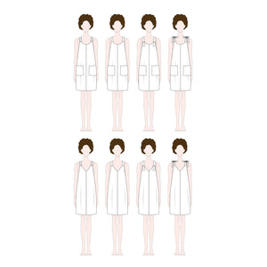 - All the pattern pieces and instructions to make at least 2 different variants, top and dress.